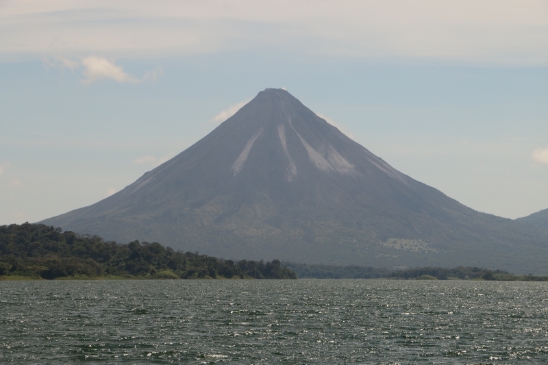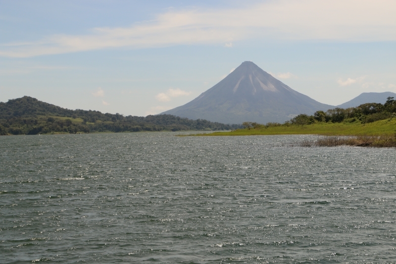 Lake Arenal is an artificial lake, created in 1973. Before Arenal erupted in 1968, it had been dormant for over 400 years and the locals did not realize it was a volcano. The unexpected eruption resulted in 87 casualties and the destruction of 3 villages – Tabacón, Pueblo Nuevo and San Luís. At its most active, the volcano flung huge rocks, some weighing several tons to great distances, burning crops and creating craters in agricultural land up to a kilometer away. It was this damaged land that became the site of Lake Arenal, as the government changed direction of several rivers, built a dam and flooded the area. The lake is now source of electricity of the country. Arenal went dormant in December 2010, but now all the infrastructure of the surrounding areas is located at a safe distance from the volcano.
