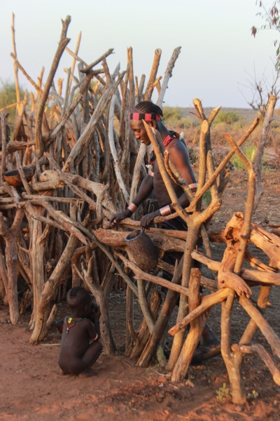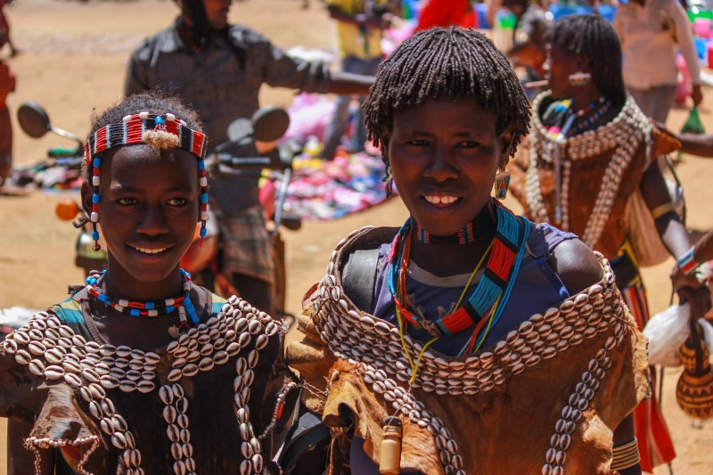The Hamer or Hamar tribe are another famous and visually distinctive ethnic group in the Omo Valley and fantastic hosts. The women wear elaborately decorated goat skins decorated with cowries, and if they are married, thick copper necklaces. They decorate their hair with a red mixture of clay and butter. Hamer men also wear read and black beads, but are usually dressed more simply. However, when a man wears a clay hair bun, it is an indication that he has killed a dangerous animal or even a person within the past year.