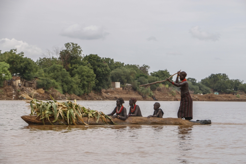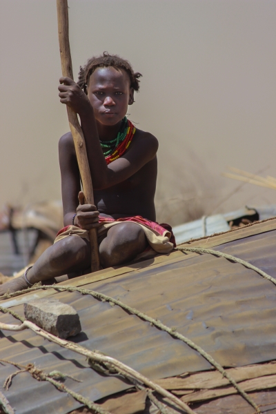 The Dassanech live right on the river and you have to cross the Omo in a dugout canoe to access their village. The area is also very close to the border with Kenya, so the government makes a point of registering visitors, so be sure to have your passport on you when you come here. The tribe lives in temporary villages, which are disassembled and moved every few years.