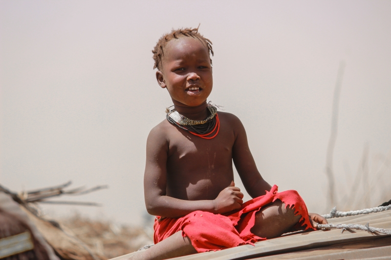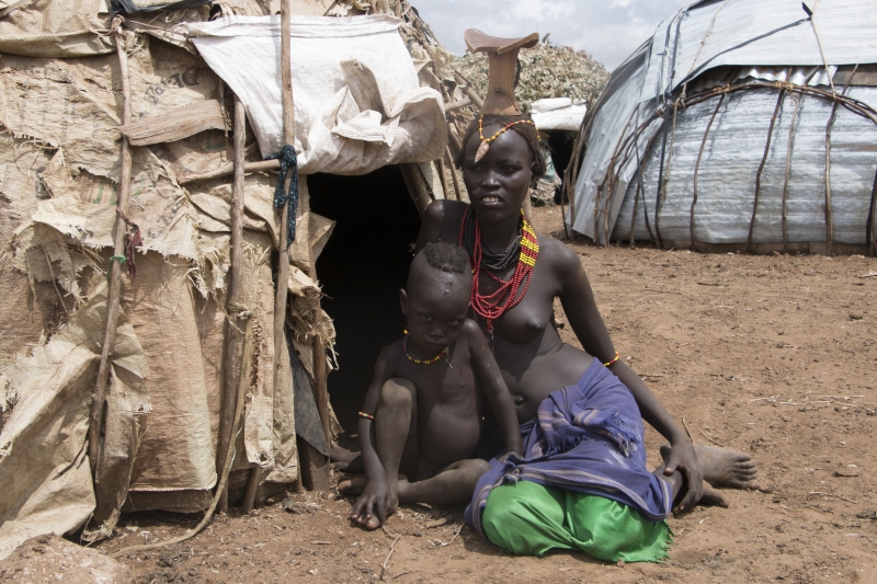 We never camped with the Dassanech, in part I am sure, because despite the river and Lake Turkana being close by, they live in a dry dusty area. The two times we visited in the afternoon, the men were off grazing cattle and only the women and children were in the village.